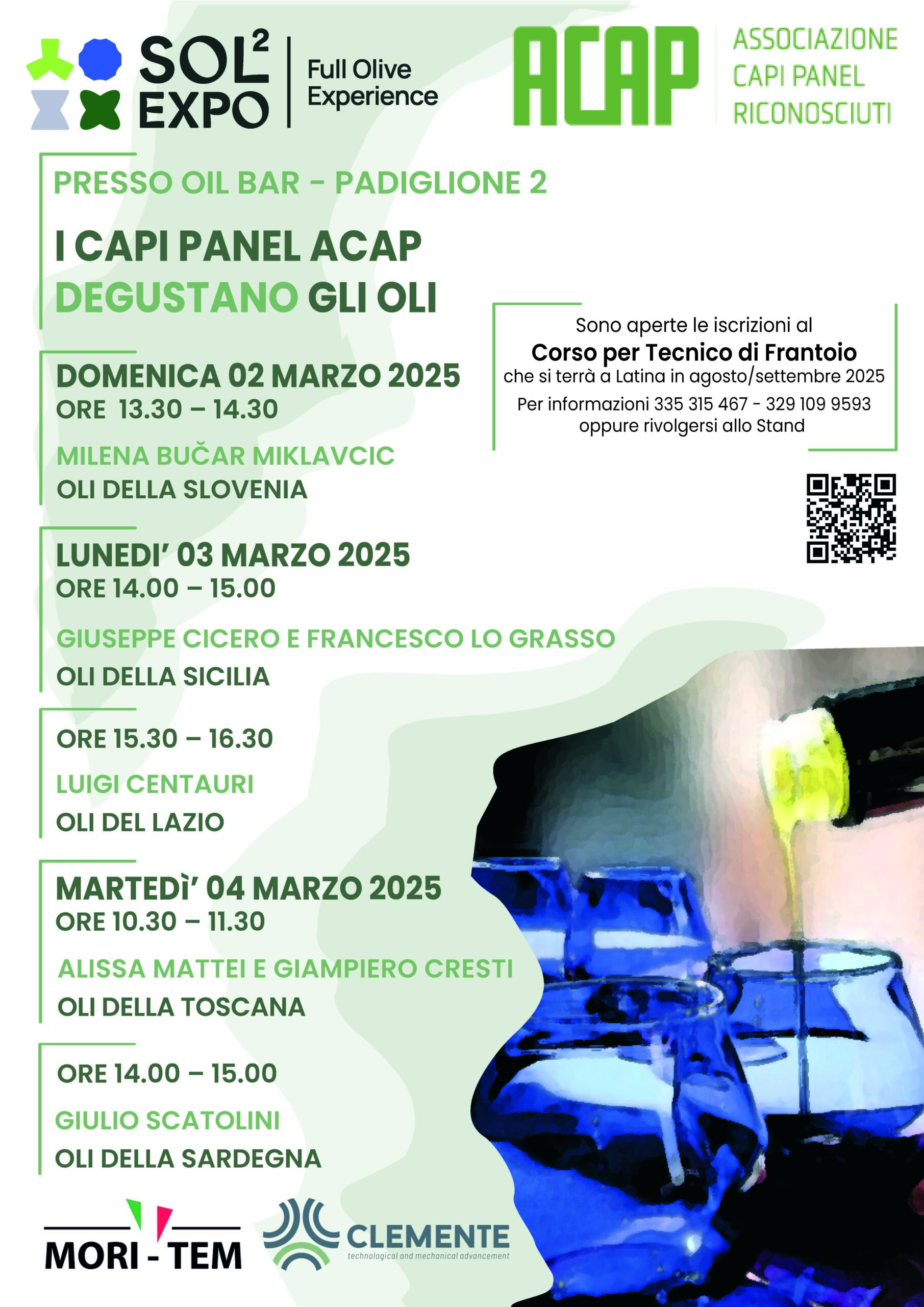 Capire l'olio extravergine di oliva con l'assaggio: la missione di Acap a SOL Expo Le degustazioni dei Capi Panel a SOL Expo sono state realizzate per gli oli di Lazio, Sicilia, Calabria, Toscana, Abruzzo, Molise, Umbria e Slovenia. Quando si assaggia, si parla o si...